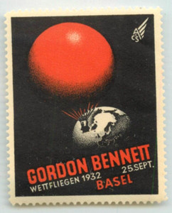 La carrera aérea/de globos Gordon Bennett de 1932 ~Suiza~ increíble sello póster