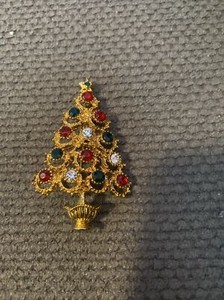 Broche alfiler árbol de navidad estrás Christopher RADKO FIRMADO joyería vintage