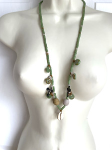 Package arrived by priority mail & in perfect condition. The necklace was wrapped in a cellophane sleeve inside of layers of tissue paper inside cardboard box. Very secure & in perfect condition with tag as described. I am thrilled with the purchase & feel I got a wonderful buy such a great value.