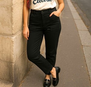 Pantalones GAP L Mujer Bolsillo Carga Cintura Elástica Tirar Alto Sarga Suave Negro