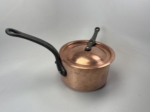 Sartén para salsa de cobre Villedieu Andre Guillaumet de colección tapa de mango largo de cobre pesado 5,5