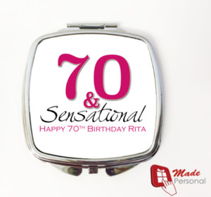 ESPEJO COMPACTO PERSONALIZADO 70 cumpleaños regalo - 70 y sensacional