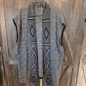 Suéter Antik Batik Para Mujer Talla 40/42 Blanco y Negro Chaleco Geométrico Boho Alpaca