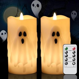 Paquete de 2 velas LED sin llama fantasma de Halloween con temporizador remoto batería de 3x6,5