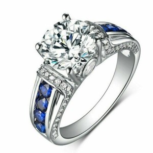Anillo de compromiso redondo de moissanita y zafiro azul de 3,00 quilates enchapado en oro blanco de 14 quilates 172,05 EUR