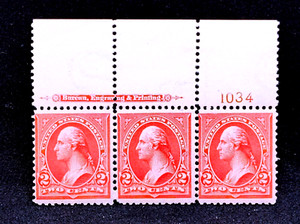 SELLOS DE MATT SCOTT US #279B WASHINGTON 2 CENTAVOS MNH/OG TIRA DE 3 con NÚMERO DE PLACA 32,63 EUR63,97 EUR