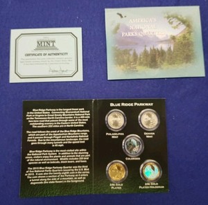 Cuartos de galón ATB 2016 coloreados/chapados EE. UU. Juego de 5 monedas Parks con cápsulas ~ L👀K 10,60 EUR