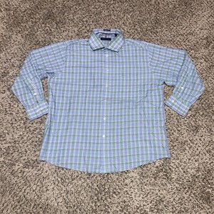 Camisa de vestir Banana Republic para hombre ajuste estándar XL azul a cuadros lavado suave