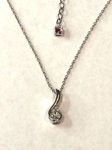COLLAR ELLE PLATA ESTERLINA .925 CRISTAL COLGANTE RUBÍ LOGO PIEDRAS PRECIOSAS 16-18" LN