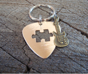 Llavero de púa de guitarra de latón hecho a mano - púa jugable - se puede personalizar