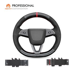 MEWANT PU Carbon Fiber Suede Steering Wheel Cover for Tesla Model 3 2023 2024