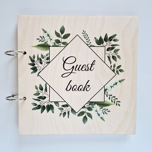 Libro de visitas de boda, libro de inicio de sesión, álbum de fotos cubierta de madera, regalo, diseño floral