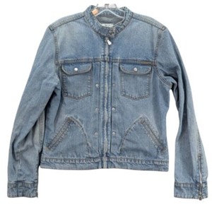 Chaqueta Denim Calvin Klein Mujer Grande Lavado Ligero Camionero Algodón Cremallera Completa Y2K