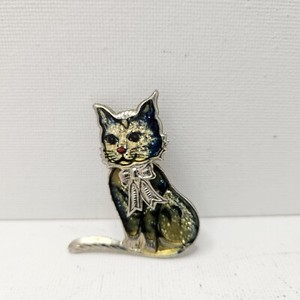 Broche broche gato tono dorado ~ cabeza de gato móvil ~ brillo ~ azul - 1 3/4" de alto - usado en excelente estado de colección