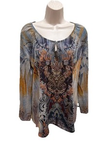 Túnica de mujer World Unity manga larga cuello cerradura boho bohemia tachonada talla M