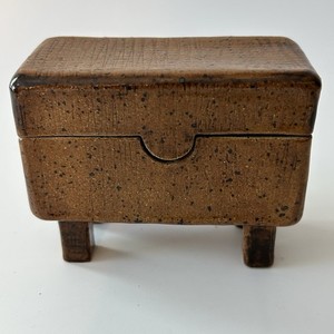 Caja de baratijas de cerámica hecha a mano con patas y tapa marrón moteado pintada a mano firmada 13,93 EUR