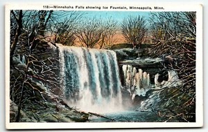 Postal Minnehaha Falls mostrando fuente de hielo Minnesota MN UNP borde blanco