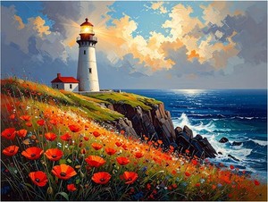 Mural de azulejos Faro del océano en acantilados con flores cocina baño pared salpicadero 32,77 EUR a 196,19 EUR