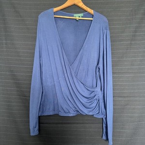 Camisa Lauren Ralph Lauren para mujer azul marino manga larga cruzada envolvente cuello en V XL