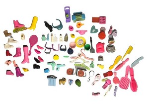 LOTE de accesorios Barbie cepillos carteras bolsas mochila zapatillas tocadiscos celulares