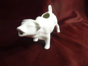 Crema jarra de leche - Vaca Moo esmaltada de porcelana blanca con campana blanca, - COMO NUEVA 5,17 EUR
