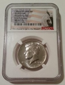 Medio dólar D Kennedy 2019 MS67 PL NGC primeros lanzamientos etiqueta bandera