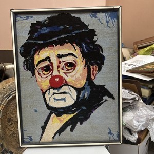 Payaso triste enmarcado vintage acabado a mano cosido punta de aguja 14’ X 19’
