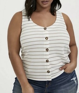 Camiseta sin mangas Torrid beige marrón a rayas tela de rizo talla 10 botones tortuga nueva con etiquetas $35 17,19 EUR