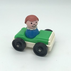 Juguete de plástico de pelo castaño Fisher Price Little People verde coche y niña azul de colección