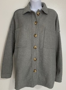 Chaqueta Abrigo BKE Mujer Gris Sherpa Polar Talla XS Manga Larga Botón