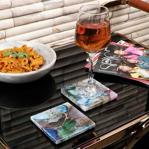 Juego de 4 posavasos de café de té de mármol rosa, hechos en la India