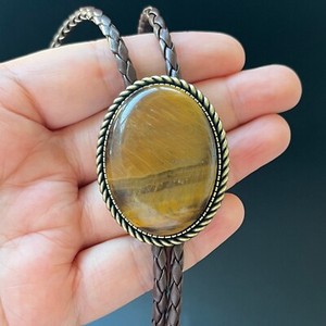 Collar de boda natural ojo de tigre piedra bolo corbata vaquero occidental aleación PU cuerda