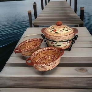 Temp-Tations Ovenware Heritage Cranberry 1 cuarto de galón y 2 9 oz. Platos profundos sin daños 21,70 EUR