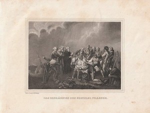 c1850 Federico II. / el grande durmiendo junto al fuego de la guardia Prusia grabado en acero 15,00 EUR