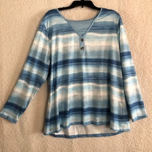 Top Pullover Mujer Azul Colores Horizontales Rayas 2XL Mangas Largas 2 Botones