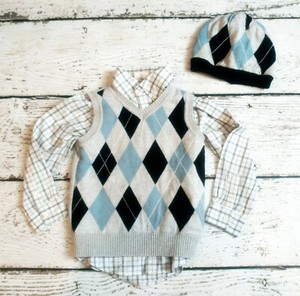 CRAZY 8 Talla 4 5 Niños Gris Argyle Chaleco, Camisa A Cuadros Abotonada Sombrero Pascua DC-TT20