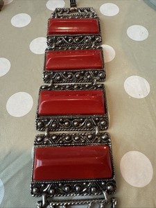 Pulsera Panel Lucite EXTRA ANCHA De Colección Plata Roja