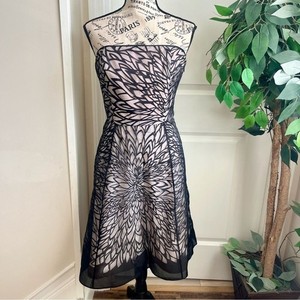 Vestido midi floral con superposición de malla sin tirantes White House Black Market rosa talla 6