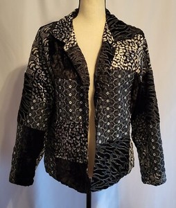 Chaqueta De Colección India Mixta Media Abierta Negra Boho Patchwork L