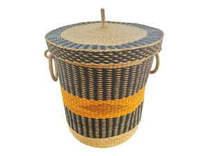 Cesta de lavandería africana con tapa, 16x18 pulgadas, cesta de almacenamiento tejida, cesta Bolaga