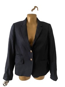 Blazer J.CREW Náutico 2 Botones 100% Lana Negro Mujer Talla 14 Chaqueta Preppy Carrera