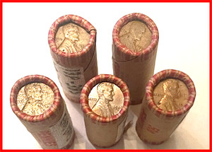 (5) Rollos de centavos Lincoln 1909-1958 (250 monedas) 50 diferentes en cada uno - fechas mixtas