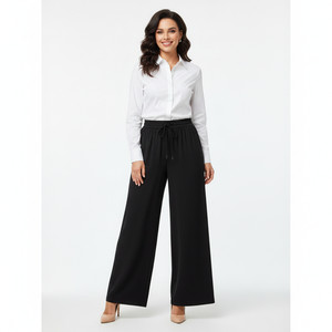 Pantalón M&S Pierna Ancha Tiro Alto Reino Unido 20 Regular Negro Palazzo Cordón Nuevo con Etiquetas Plus