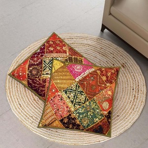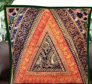 EXOTIC BOHO INDIAN SARI ART BEADED BED TOSS THROW FLOOR CUSHION PILLOW COVER 24"