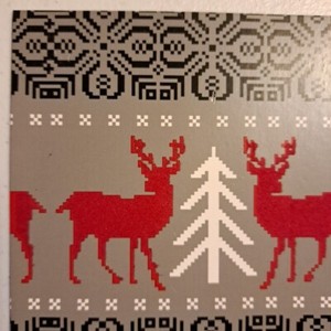 Juego de 6 tarjetas de notas navideñas WINTER COTTAGE reno rojo sobre plata 5" x 5"
