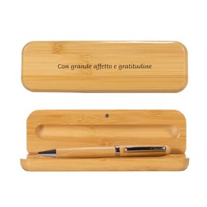 Penna in bambu con astuccio in legno personalizzabili con dedica idea regalo