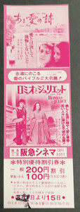 Romeo y Julieta Leonard Whiting Olivia Hussey 1968 PELÍCULA Tarjeta de boleto de descuento