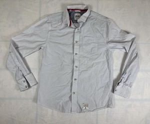 Superdry Camisa Cuello Corte Lavado Manga Larga Hombre M Gris Blanco Rayas
