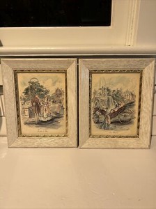 Juego de 2 cuadros románticos marcos dorados escena francesa estampados firmados vintage 27,61 EUR34,51 EUR