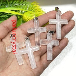 1.8" Cristal Transparente Natural Cruz Cuarzo Cristal Calavera Tallado Colgante Curación 5 piezas